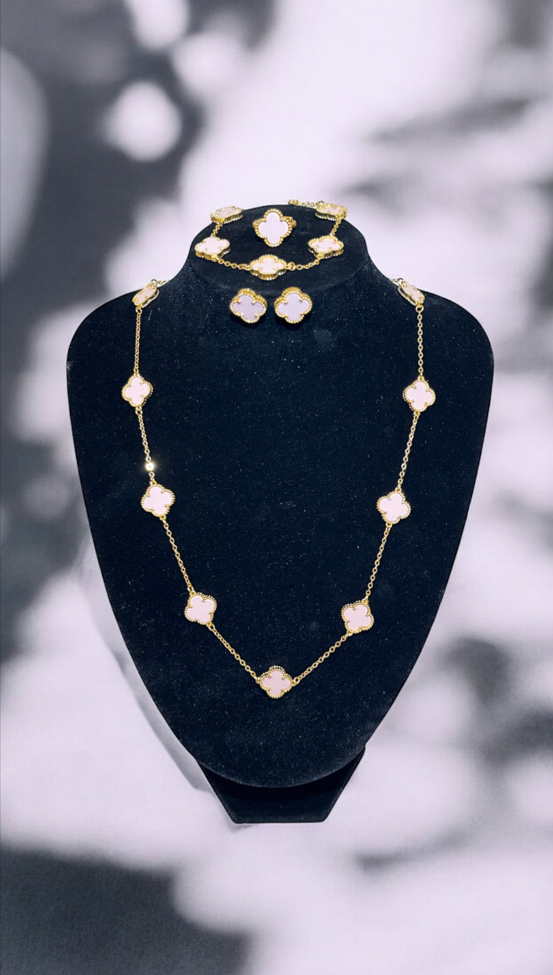 Baby Pink Clover Necklace,Earings,Bracelet and Adjustable Ring Set